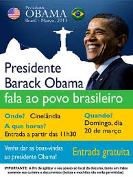 O presidente Obama e seu show de oratória,simpatia, e desenvoltura . Na cidade maravilhosa conseguiu a simpatia da platéia:"Alô, Rio de Janeiro. Alô, Cidade Maravilhosa. Boa tarde todo o povo brasileiro"...E começou a falar para a elite deslumbrada e convidada a dedo. Falou da forma distinta que foi recebido e sua família. Falou da beleza da cidade,dos laços históricos,da integração na segurança. Falou da ditadura (fazendo referência a Dilma),democracia,ascensão social (lembrando de Lula). As palavras bonitas do presidente Obama,e a construção inteligente que fez. Infelizmente,observou-se a retórica. A ditadura contra a a qual aquela jovem (Dilma) se insurgiu foi imposta com ajuda material de quem?… dos Estados Unidos. Tem muita gente que aplaudiu e esqueceu o fato. Lógico, que Obama não tem nada com isto,mas a história registra o ocorrido. Falou que volta ao Brasil ...nas Olímpiadas. Terminou o discurso assim: "Obrigado. E que Deus abençoe nossas nações.” Já no bom estilo americano, a segurança (de guerra) desconfiava do ar brasileiro,e todos nós sabemos qual foi o espaço aéreo várias vezes violado!.